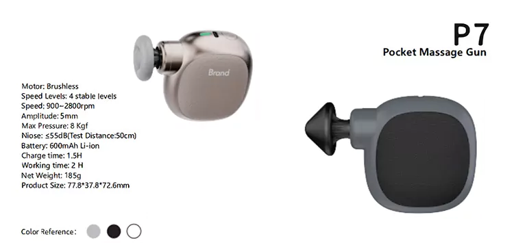 This Brushless Pocket Massage Gun (Model:P7) is new developed model in 2025.